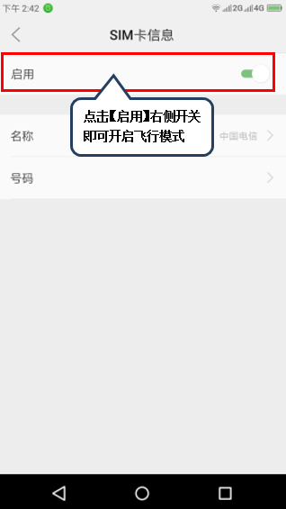 4. 点击【启用】右侧开关是指变为灰色,即可开启飞行模式,如图1-4所示。