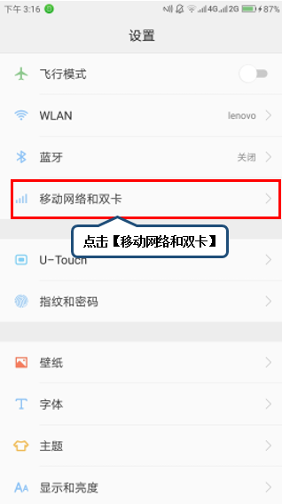 2. 点击【移动网络和双卡】,如图1-2所示;