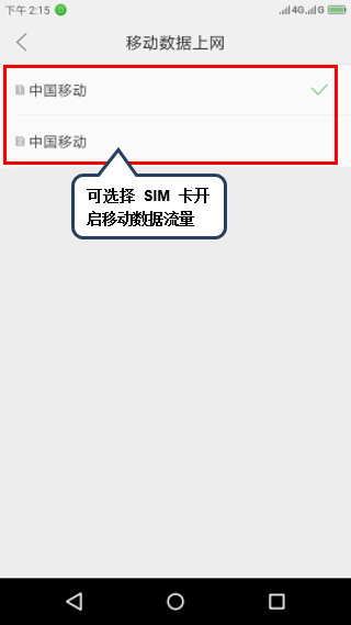 4. 选择SIM卡,即上网时默认使用该SIM卡,如图1-4所示。