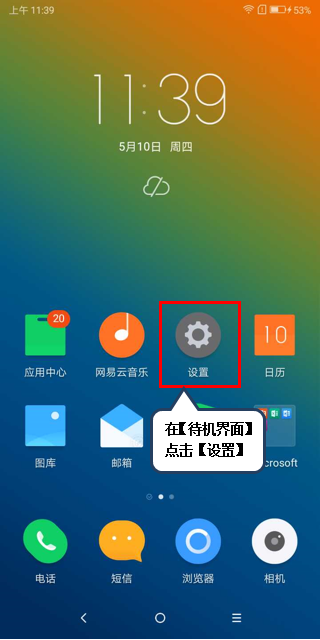 1.在【待机界面】点击【设置】,如图1-1所示;