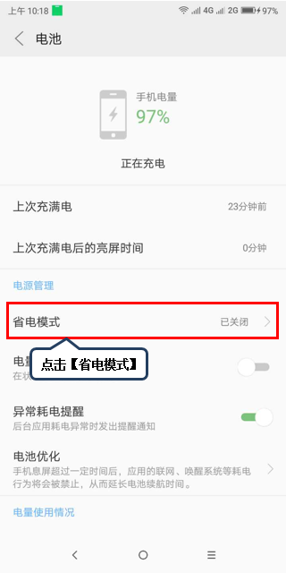 3.点击【省电模式】,开启【省电模式】即可,如图1-3至图1-4所示。