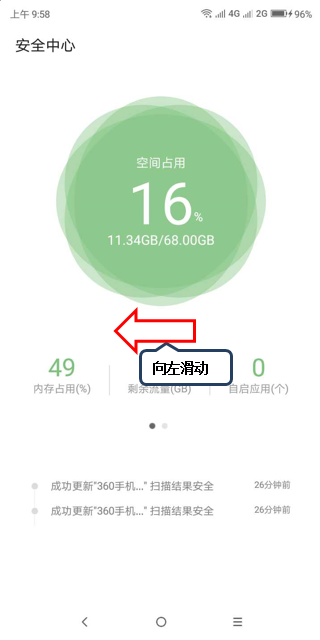 2.在【安全中心】界面向左滑动,如图1-2所示;