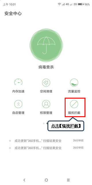 1.在待机界面下,点击【安全中心】,如图1-1所示;