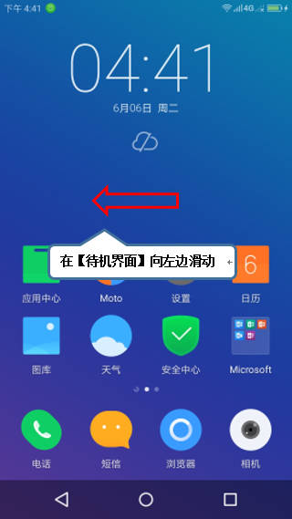 2. 在【待机界面】向左边滑动,如图1-1所示;