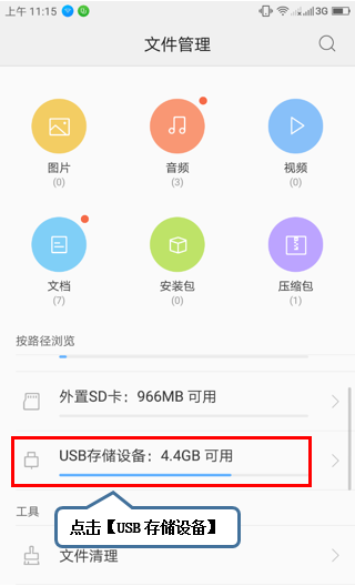 手机或平板使用过程中,手机和U盘通过OTG连接后,可在手机上查看U盘上的文件,如何在文件管理中查看OTG外接U盘文件可参考以下操作: