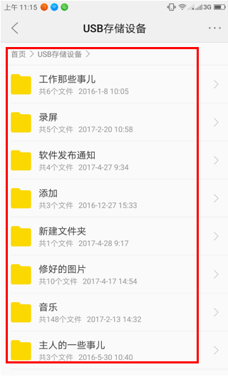 5. 点击【USB存储设备】即可看到OTG外接U盘的文件,如图1-4至图1-5所示;