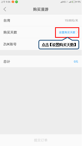 6. 点击【设置购买天数】,选择购买天数,然后点击【提交订单】,如图5-7至5-9所示;