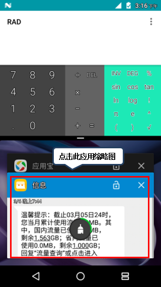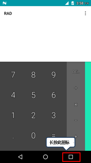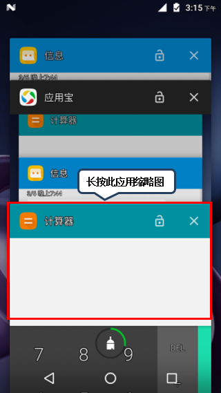 1、打开某个应用,长按多任务键,如图2-1所示;