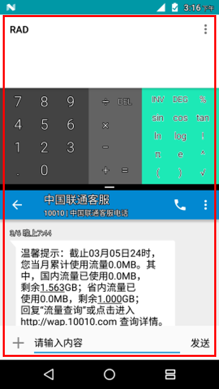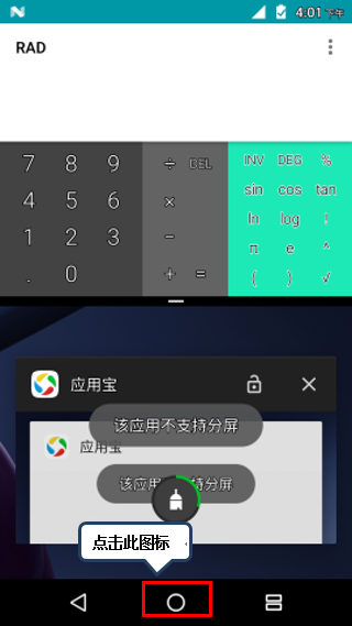 2、该应用就会进入分屏模式,点击菜单键返回界面,如图2-2所示;