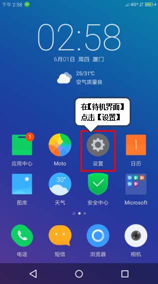 1. 在【待机界面】点击【设置】,如图1-1所示;