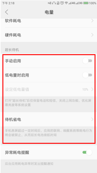 4. 可以选择【手动启用】、【低电量时启用】或是【待机省电】省电,如图1-4所示;