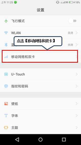 2. 点击【移动网络和双卡】,如图1-2所示;
