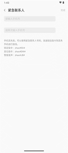 3. 设置紧急联系人。紧急联系人作用:通过紧急联系人号码发送短信指令