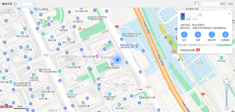 1. 定位:在设备的信息窗口中如果您的设备在线且可以定位,便会在地图上显示其大致位置。