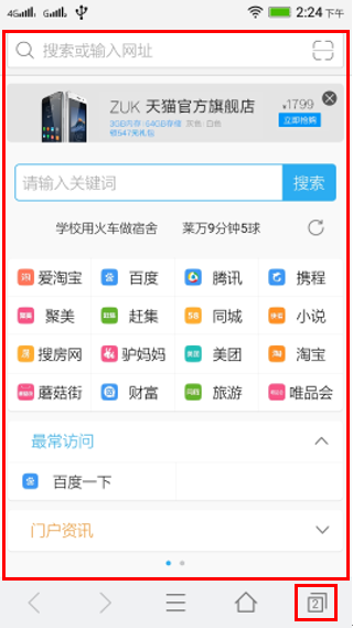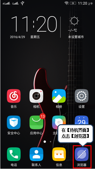 1. 在【待机界面】点击【浏览器】,进入浏览器界面,如图1-1所示;