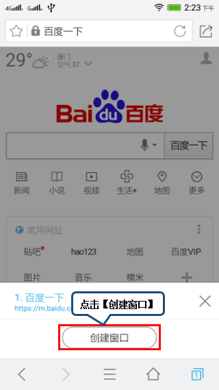 3. 点击【创建窗口】添加新的网页,如图1-3至1-4所示;