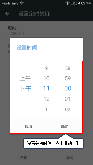 4. 点击【时间】,设置定时开机的时间,点击【确定】,如图1-4至1-5所示;