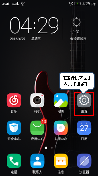 1. 在【待机界面】点击【设置】,如图1-1所示;