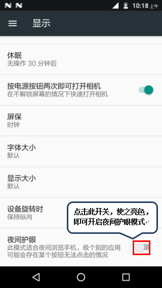 3. 点击【夜间护眼】右侧开关,使之亮色,即可开启夜间护眼模式,如图1-5所示。