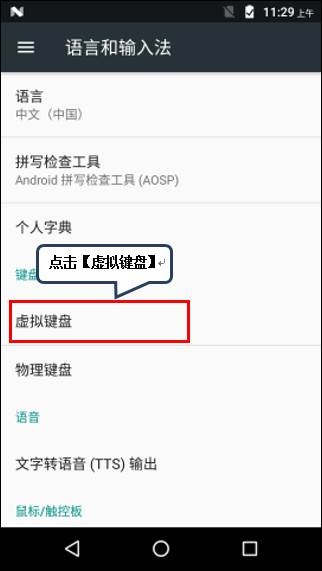 1. 在上述步骤2,找到并点击【语言和输入法】,再点击【虚拟键盘】,如图2-1至2-2所示;