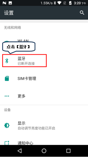 2. 点击【蓝牙】,进入【蓝牙】界面点击右上角开关,如图1-2至1-3所示。