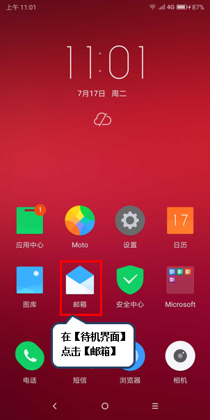 1.在【待机界面】点击【邮箱】,如图1-1所示;